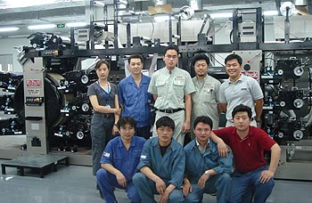 2004年公司开始涉足不干胶标签领域。首先引进了日本岩崎间歇式不干胶标签印刷机,配备了较高的6色+1上光+模切功能。岩崎机的技术先进性,质量稳定性,高生产效率,为东港公司引来了大量的中高档次的定单。使得东港公司很快立足于不干胶标签行业。而且不到一年,再次引进凸版不干胶印刷机中最高档次的日本KO-PACK全轮转高速印刷机M-CLASS 9色+1上光,随机还引进了KO-PACK 原装制版设备圆筒曝光机。目前两台设备已成功完成安装并投入生产。