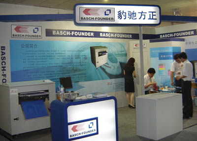 豹驰方正的CTP冲片机和版材也参加了展出,引人注目。