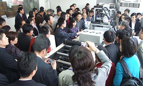 2008年4月22日,北京豹驰技术发展有限公司联合天津市路征印务有限公司、美国EFI公司在天津举办了EFI Jetrion 3000系列工业喷墨系统演示会。会议由北京豹驰技术发展有限公司总经理杨晓明先生主持,北京豹驰技术发展有限公司董事长程康英先生、天津市路征印务有限公司总经理尹月动先生、美国EFI公司全球销售总监Mr Dean先生以及政府相关部门领导、来自全国各地的印刷企业代表近百人参加了本次活动。值得一提的是,本次会议得到了政府相关部门的支持和关注,国家质检总局产品质量电子监管网推进工作办公室、中国物品编码中心服务部、国家条码质量监督检验中心、河北省质监局及中信国检信息技术有限公司的领导均出席了本次交流演示会。