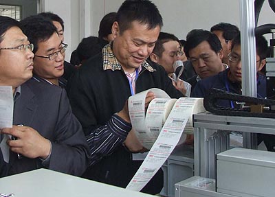 天津市路征印务有限公司代表邢又其先生随后在发言中指出,电子监管码给印刷企业带来了新的机遇。他说:“如果从铅印到胶印的转变是第一次技术更新的话,那么,我们现在面临的是第二次改变。因为我们现在已经是变码印刷时代,完成技术改造任务是我们每一位印刷同行势在必行的。”路征印务有着近30年的历史,目前已经成为安全票证印刷,防伪印刷,标签印刷,彩色印刷为一体的综合印刷企业,成为首批中国产品质量电子监管网可变条码标签印刷企业之一。2004年,路征印务引进了第一套变码设备,即从豹驰引进的赛天使数码喷墨系统。如今,包括今年最新引进豹驰代理的EFI Jetrion 3025喷墨系统,路征印务已拥有6套变码印刷设备,可为客户提供各种变码标签印刷服务。