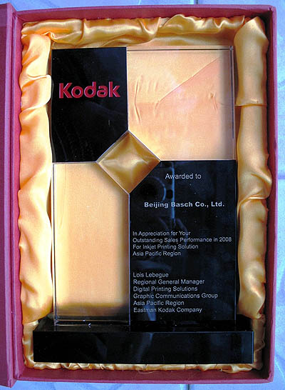 2009年5月9日,在柯达图文影像集团全球代理商年会上,北京豹驰技术发展有限公司荣获2008年度亚太区卓越销售奖,这是对我们销售团队过去一年优异工作成绩的充分肯定。在这次年会上北京豹驰技术发展有限公司提出了2009年度的销售目标,要比2008年度再增加20%。我们有信心努力达到这个目标,再创新的高峰。