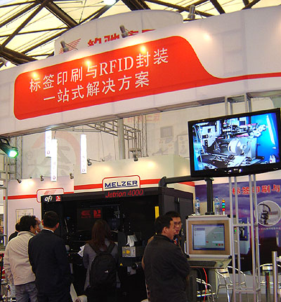 2009年上海国际标签印刷展于12月1-4日在浦东新国际展览中心隆重举行。豹驰公司旗下北京豹驰技术发展公司,上海豹驰春蕾胶辊公司和北京豹驰智能技术有限公司联合参展,吸引了大批中外客户。 日本岩崎标签印刷机因为机器大,来不及增加展台面积,只能展出图片。美国的EFI Jetrion 4000型喷墨标签印刷机是世博会门票的印刷设备,展会上显得突出,观者踊跃。Melzer智能标签生产线在大屏幕上不断演示,它是奥运会RFID门票制作的功臣,它们联合起来提供标签印刷和RFID封装的一站式解决方案。