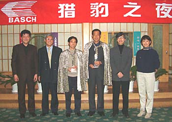 在22日“猎豹之夜”的晚宴上,程康英总裁宣布了2002年最佳办事处获得者,即“四川办事处”和“山东办事处”。王健副总给最佳办事处的代表授奖(图2)。